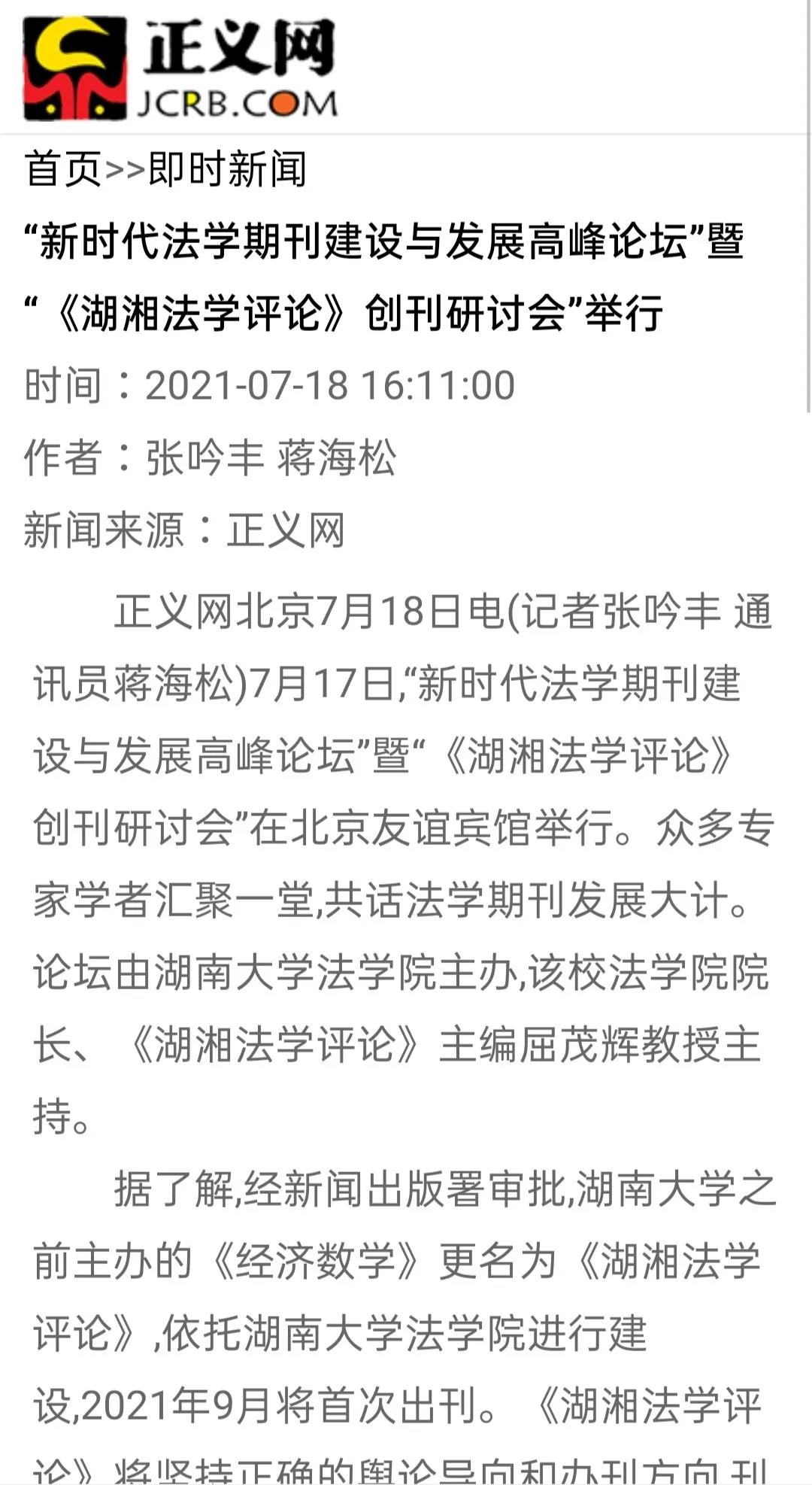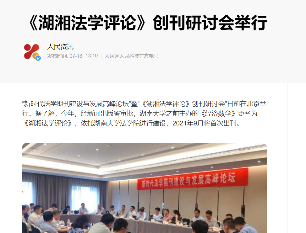 进行建设。2021年9月将首次出刊。《湖湘法学评论》将坚持正确的舆论导向和办刊方向,刊载法治建设理论成果和实践经验,突出实证研究特色,服务法学理论创新和法治中国建设。在《湖湘法学评论》创刊之际,举办研讨会,既为新刊的发展问计于各位专家教授,集思广益,也是为法学期刊界凝聚共识,推动创新发展。