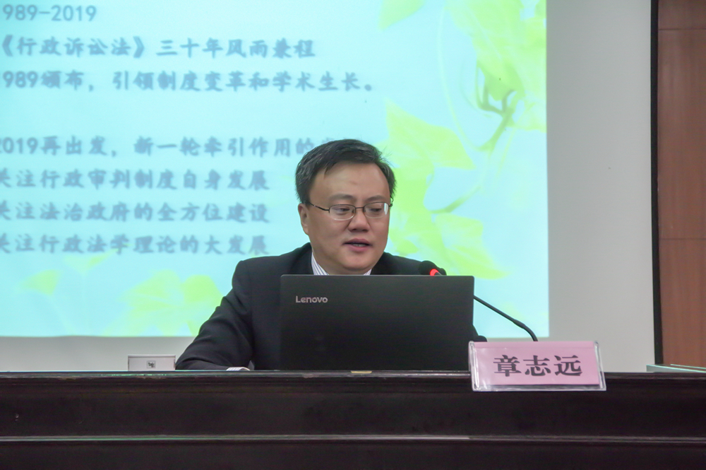 讲座伊始,章志远教授谈到,今年是《行政诉讼法》颁布实施的三十周年,是具有里程碑意义的时刻。中国的法治建设、中国的行政法学研究离不开1989年《行政诉讼法》,1989年是行政法学的高光时刻。在2019年新的起点上,需要关注三个方面的问题:第一,关注行政审判制度自身发展;第二,关注法治政府的全方位建设;第三,关注行政法学理论的大发展。