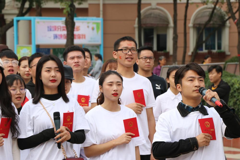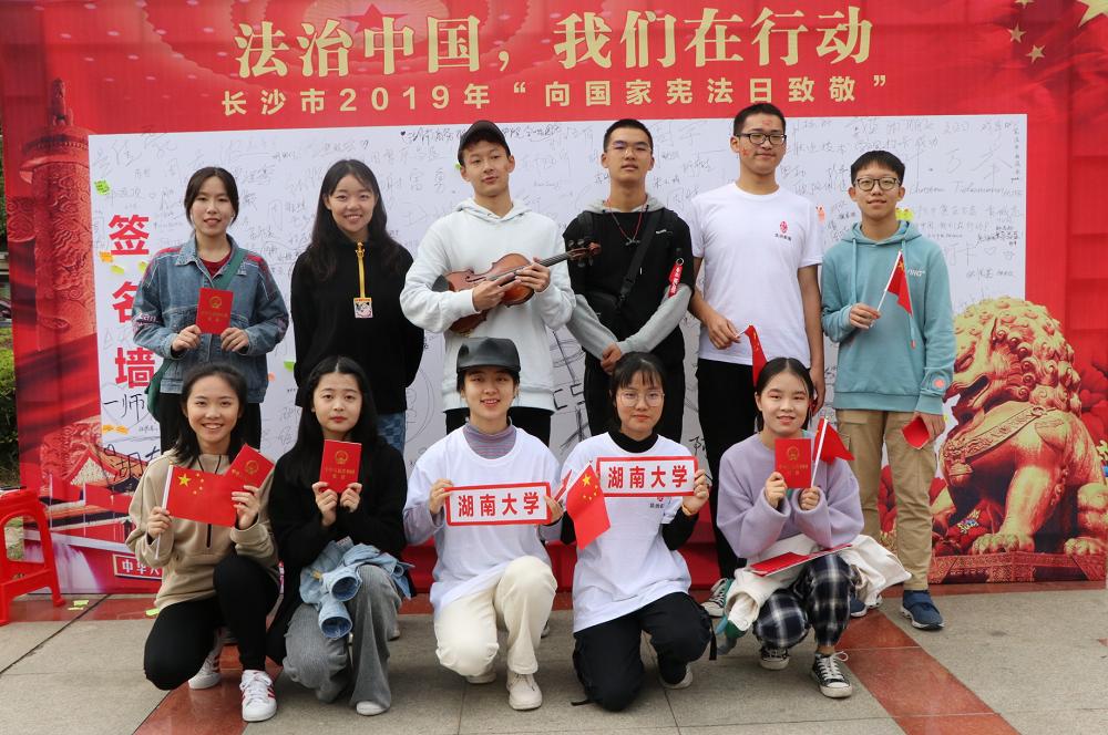 学生在长沙市咸嘉广场参加2019年度“祖国在我心中,宪法伴我一生”快闪活动。本次活动由长沙市司法局主办,岳麓区区校共建大学生法制联盟、长沙市岳麓区司法局、岳麓区咸嘉湖街道共同承办,国产av