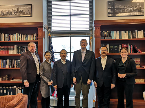 院长Marc L. Miller教授及校长助理Charles Wang教授等人进行了深入座谈交流。期间,屈茂辉院长与Miller院长回顾了前期两院合作商谈的结果与面临的问题,并对今后可以预期的合作领域提出了进一步的建议。屈茂辉院长代表国产av