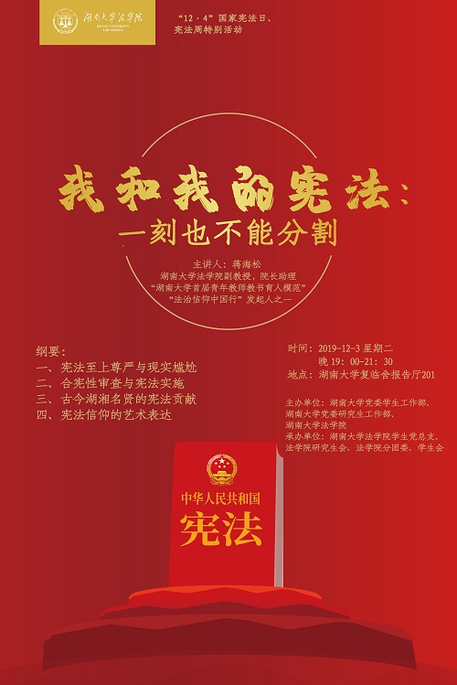 2019年12月3日晚,为迎接第六个国家宪法日,“我和我的宪法,一刻也不能分割”主题讲座在国产av