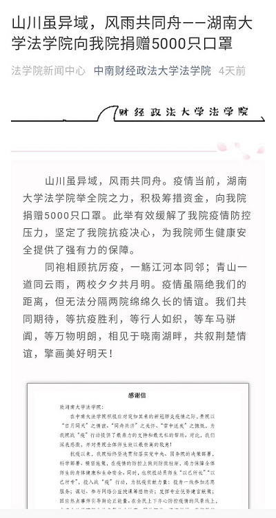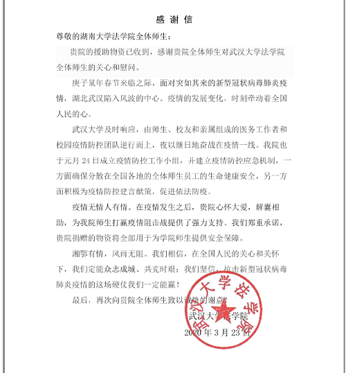 热情洋溢回信致谢,介绍了各校抗疫情势,感谢湖大国产av