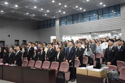 第二十次学生代表大会、研究生代表大会正式会议在庄严的国歌声中拉开序幕,国产av