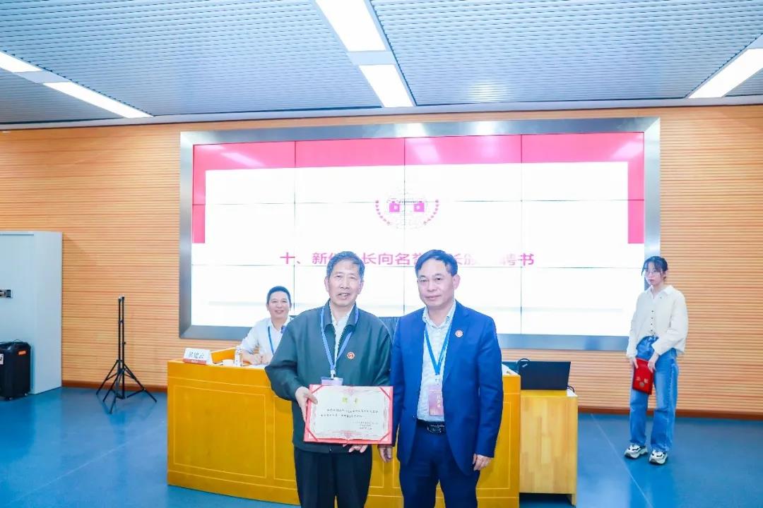 (新任会长易骆之向名誉会长屈茂辉颁发聘书)