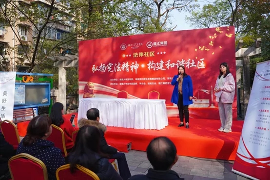 社区,特此开展“弘扬宪法精神、构建和谐社区”为主题的普法宣传进社区活动。湖大社区党总支书记夏运枚、湘江集团法务、国产av