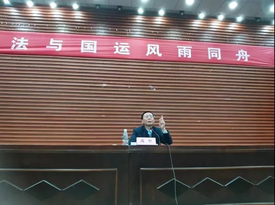 教授、理论法学研究中心主任高中教授应邀在法学楼报告厅做了题为“宪法与国运风雨同舟”的主题讲座。讲座主要围绕我国宪法的发展历程和实施状况展开。高老师声情并茂地讲述了宪法发展和国情、国家命运之间的深刻联系。高老师的讲座兼具深度与广度,引起在场观众深度讨论和思考,现场气氛热烈。