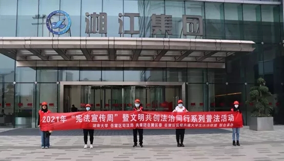 团委、学生会、研究生会联合湘江集团开展“法伴企业——弘扬宪法精神,护航企业发展”活动。志愿者们首先向湘江集团员工分发宪法知识宣传手册,并结合手册内容向企业员工普及宪法知识,深化企业员工对宪法的了解。随后,志愿者们就我国国家宪法日的设立、宪法与工作生活的联系及作为企业员工对宪法的期待与展望等问题对企业员工进行随机采访。企业员工充分表达对宪法和法治的理解与感悟,在企业内部营造尊重宪法、遵守宪法、学习宪法的良好氛围,为真正实现法治进企业、法治促发展添砖加瓦。