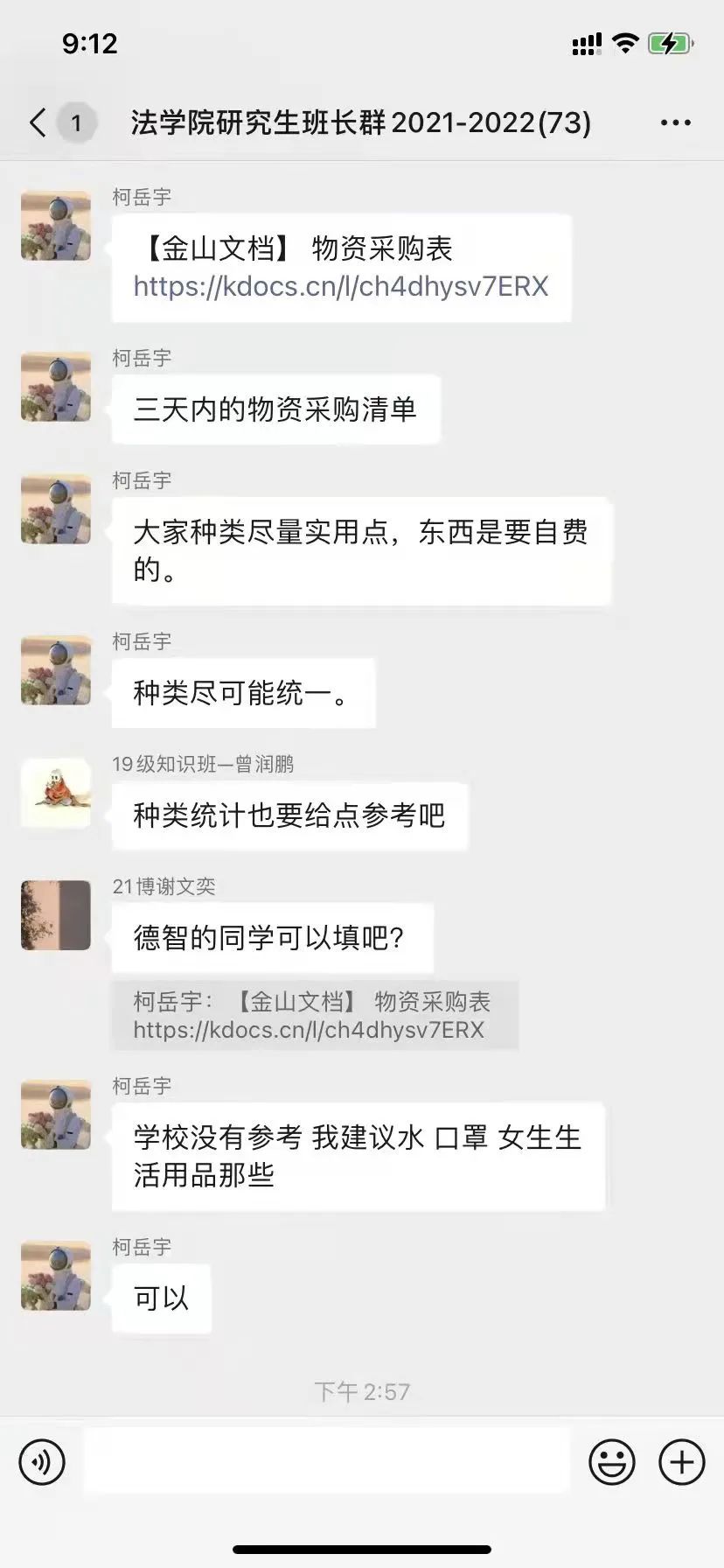 辅导员与班长耐心统计同学们的生活物资需求