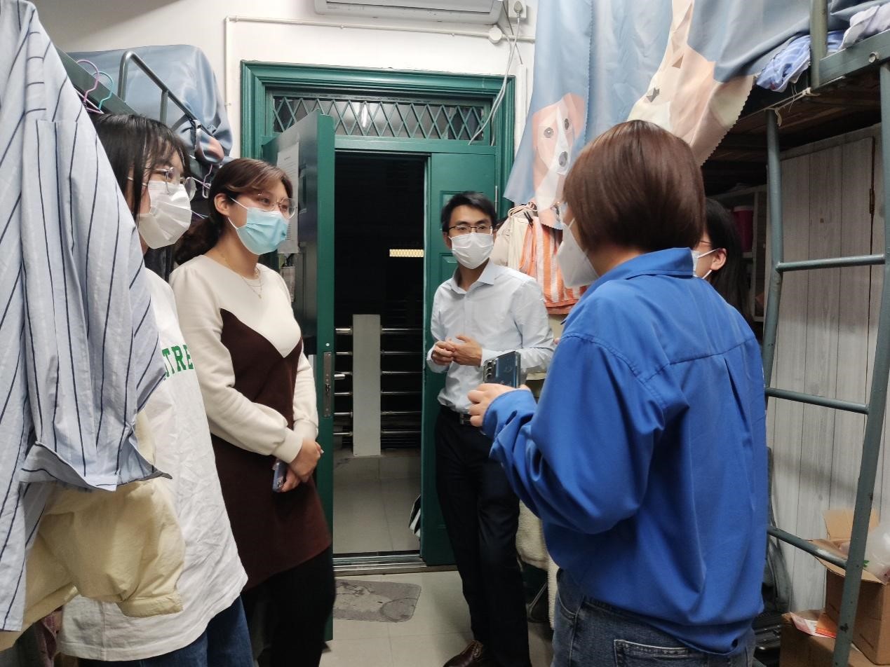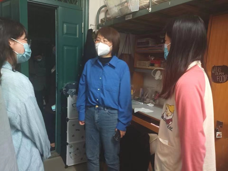 走访慰问过程中,老师们在宿舍内与同学们进行亲切交流,悉心询问同学们在封闭管理期间的身体状况及学习、生活保障情况,宽慰同学们的心理,叮嘱同学们做好自我防护。走访的老师们特别提醒同学们,无论是居寝隔离期间还是待宿舍园区解控以后,寝室都要勤开窗、常通风、保持寝室整洁卫生。法律人讲条理、讲逻辑、讲层次,整洁有序的环境有助于愉悦心情、提高学习效率。