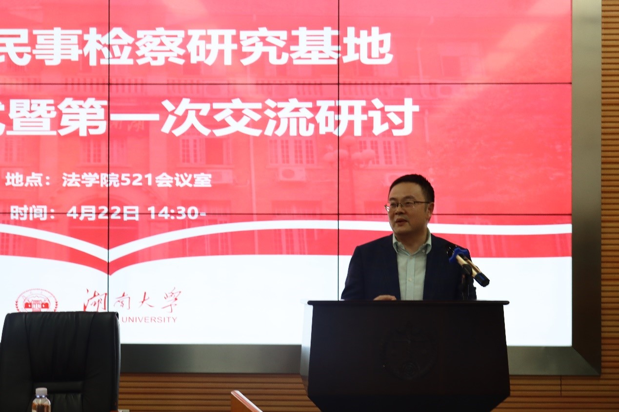 多次派出专家教授赴省检察院进行业务培训授课、专家学者论证、竞赛集训指导,为湖南民事检察队伍在全国多次业务竞赛中取得佳绩倾注了大量心血;此次民事检察研究基地的成立,是进一步推动检察实践和法学教学融合发展的务实之举。他表示,期待基地对事关民事检察长远发展的重大战略性问题进行深入研究,推动民事法学教育、理论研究和民事检察实践相得益彰、相互促进;期待基地聚焦民事检察业务重点难点热点问题,积极参与重点课题研究,助力法律监督水平提升;期待基地带动全省检察机关形成钻研专业问题、研究检察业务的浓厚氛围,让更多检察人员尽快成长为检察实务的行家里手、司法办案的中坚骨干、理论研究的专家人才;期待基地发挥桥梁纽带作用,促进检察机关与法学界、科研院所的交流互动,实现资源共用、成果共享、优势互补。