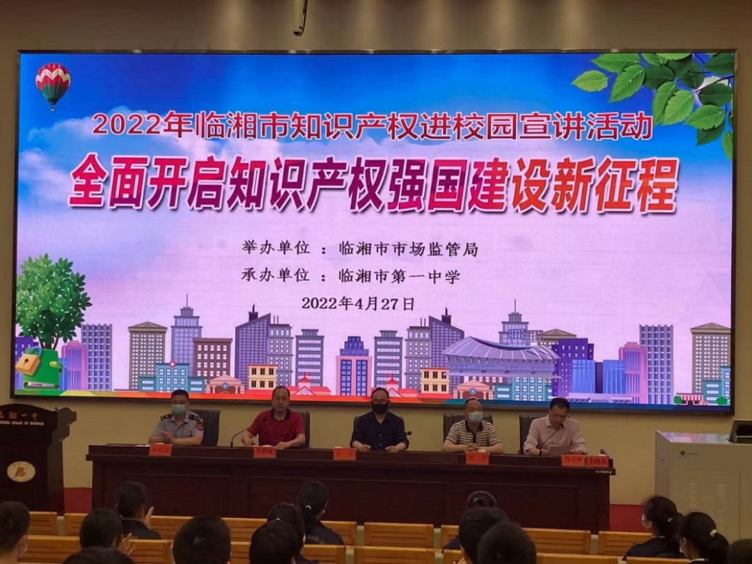 在第22个世界知识产权日来临之日,受岳阳市市场监管局、临湘市市场监管局邀请,4月27日我院国家知识产权培训(湖南)基地李丹在临湘市第一中学为广大师生开展知识产权科普宣讲。
