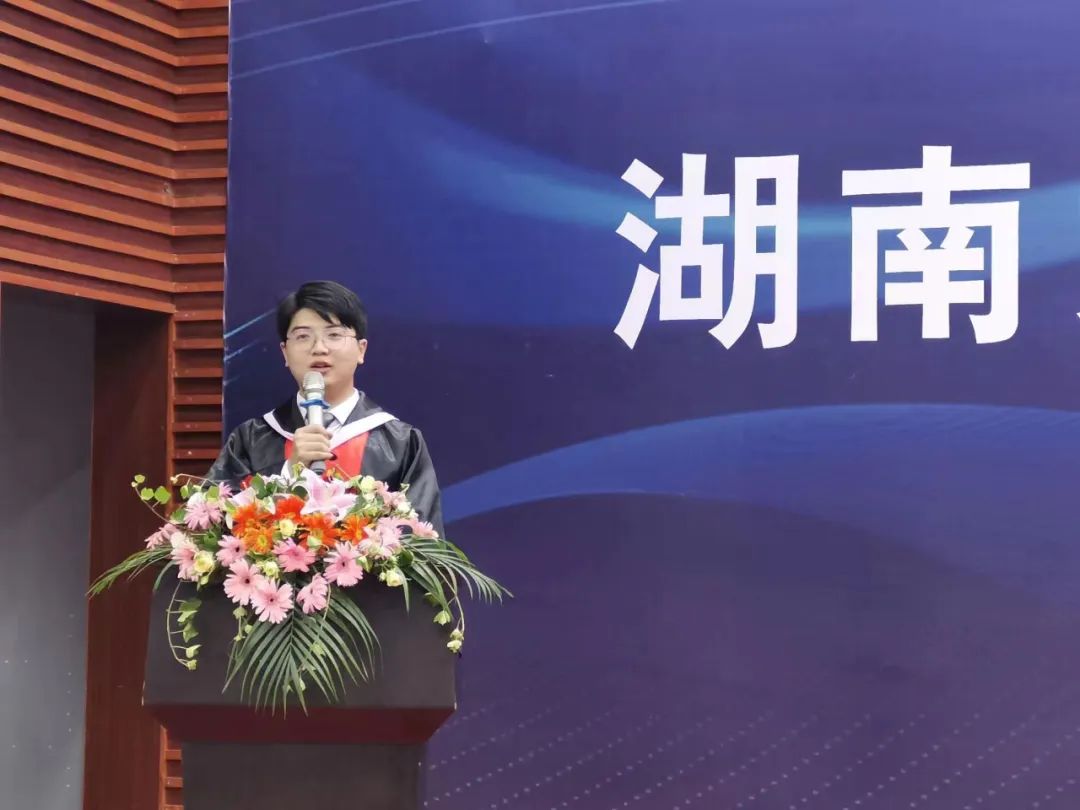 启程,或继续读研、或出国深造、或走向理想的工作岗位,无论我们身在何方,我深信我们都会无愧于恩师的培养,无愧于家长的期盼,无愧于母校的希冀,去创造属于我们的蔚蓝晴空。愿我们始终牢记“实事求是,敢为人先”的湖大精神,常怀“登高自卑”的谦逊品格,继续书写“楚材斯盛”的时代华章。愿我们心有猛虎,亦可细嗅蔷薇,愿我们此去繁花似锦,再见依然如故。