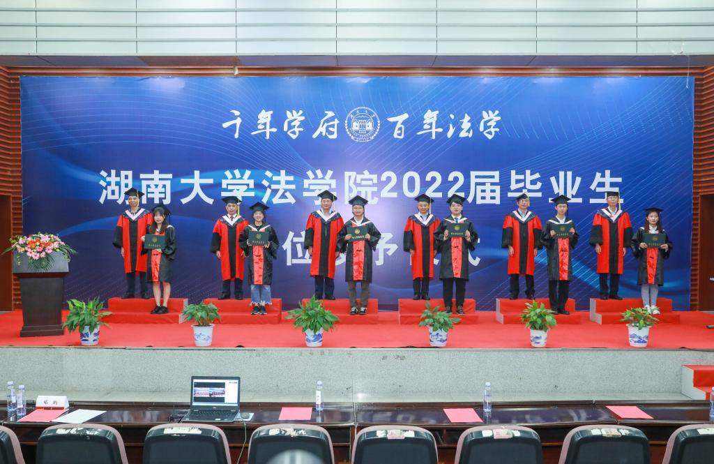 四年华彩岁月,够我们历一些事情,长一些心智、多几分才干。我们如今的面容不再是当年的青涩懵懂,四年大学生活,长得自然也不只有体重,还有脑中的知识,肩上的担当和胸中的热血。今日身着学士服,青春肆意,风华正茂,我们带着名为法律人的骄傲从湖大离开,告别校园,迈向社会。在这个处于世界百年未有之大变局,不确定、不稳定因素增加的时代,在这个压力大,节奏快,许多人都被困在不合理内卷中憔悴不堪的时代,我们要做自己路上的小小星辰,永远熠熠生辉,始终铭记师长的谆谆教诲,始终在自己的道路上奋力前行,纵然身心俱疲,双眼依旧闪亮。有人曾将毕业季称为永远潮湿的季节(正如现在窗外淅淅沥沥的雨),也有同学将长沙戏称为“中国雨极”。那么,就愿这个季节的雨水可以抹去我们的泪痕,并连同欢笑和经历为我们的青春留下一抹彩色印记。