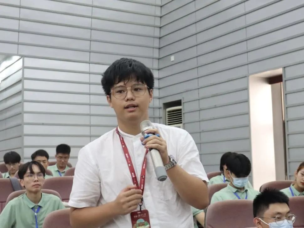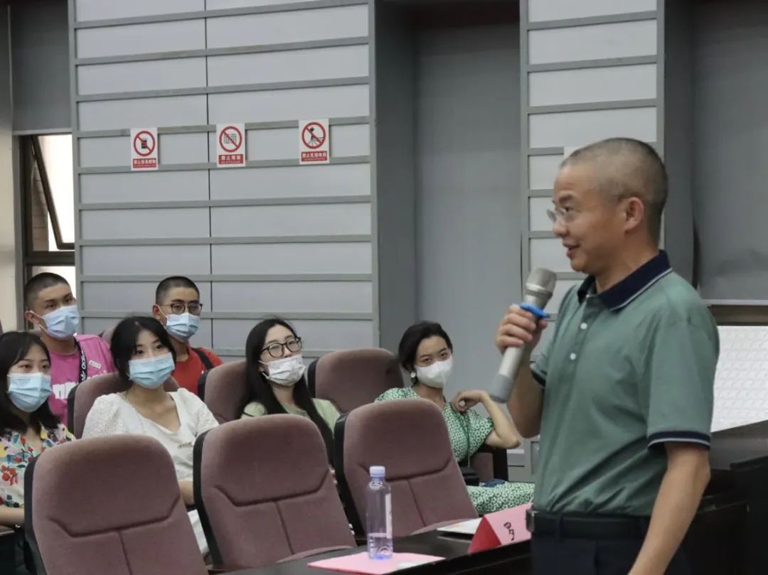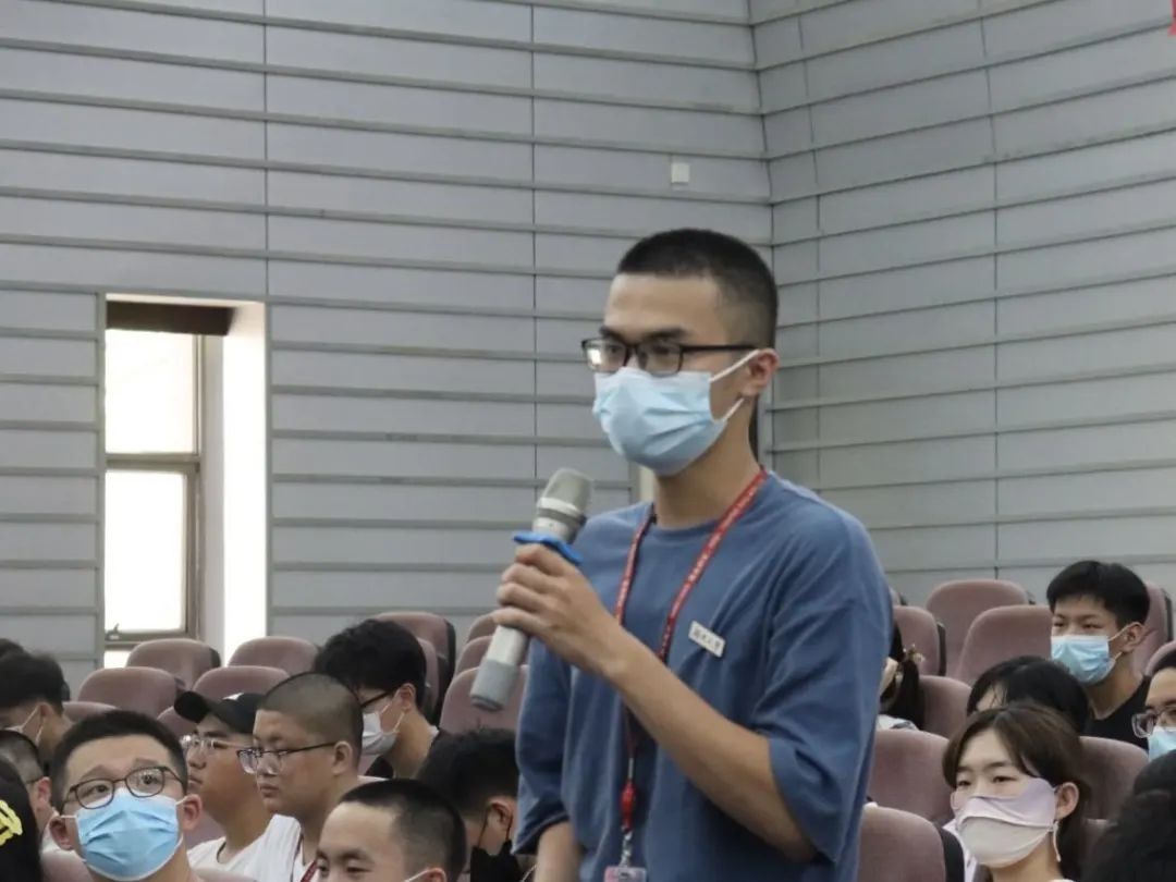 课程设计的内容及特点,特别是对于大一第一学期的课程做了重点介绍。最后,蒋老师向新生提出了几点学习建议——利用军训期间稍作学习预习、看基本法条以及网络热点讨论、重视经典人文阅读、注意学制要求、保研要求等基本规范。