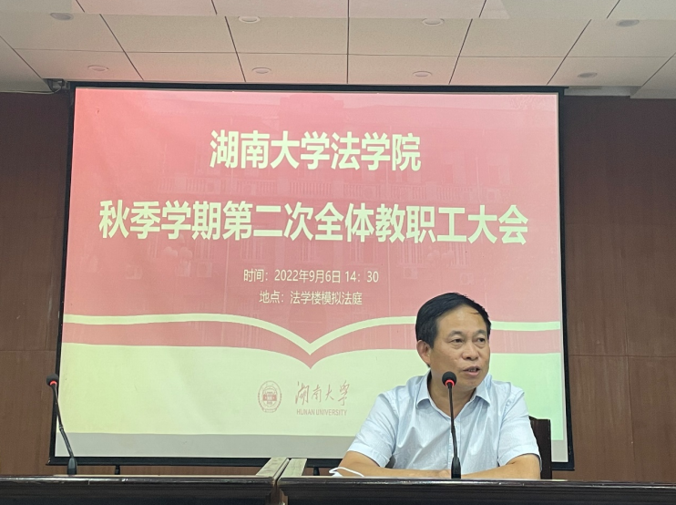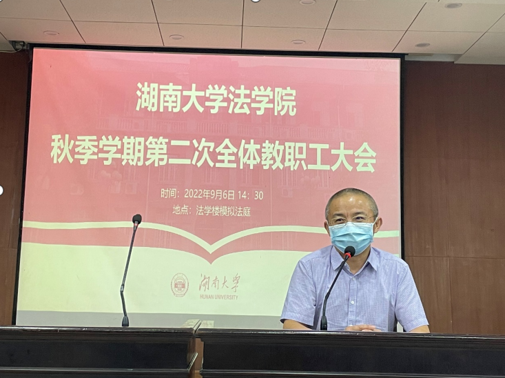 在模拟法庭召开2022年秋季学期第二次全体教职工大会,大会由国产av