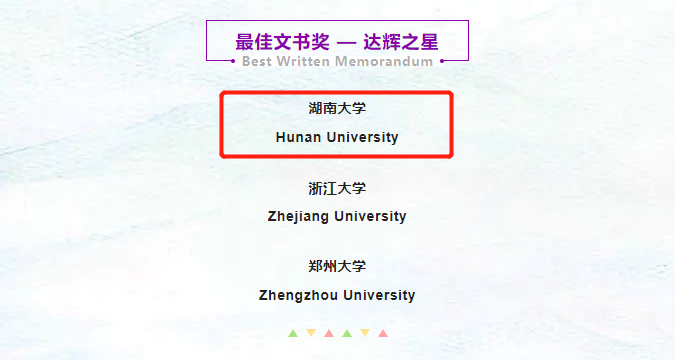 再次获得仅3个名额的Best Written Memorandum(最佳文书奖),成为“贸仲杯”赛事近年来唯一连续两年蝉联最佳文书奖全国第一名的参赛队伍。