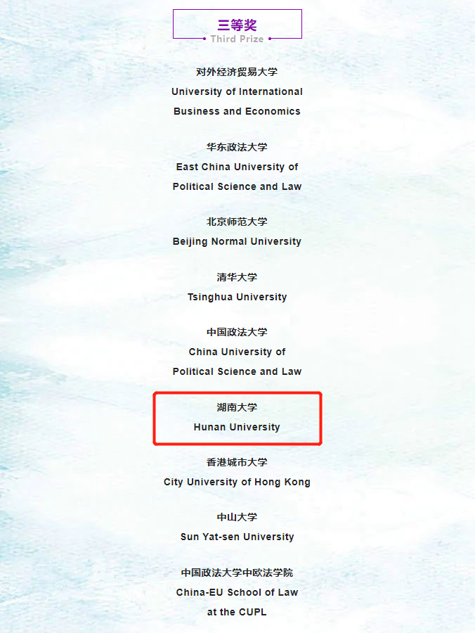 势如破竹,在循环赛阶段与清华大学、中国政法大学、华东政法大学等代表队一同获得Third Prize(三等奖)。