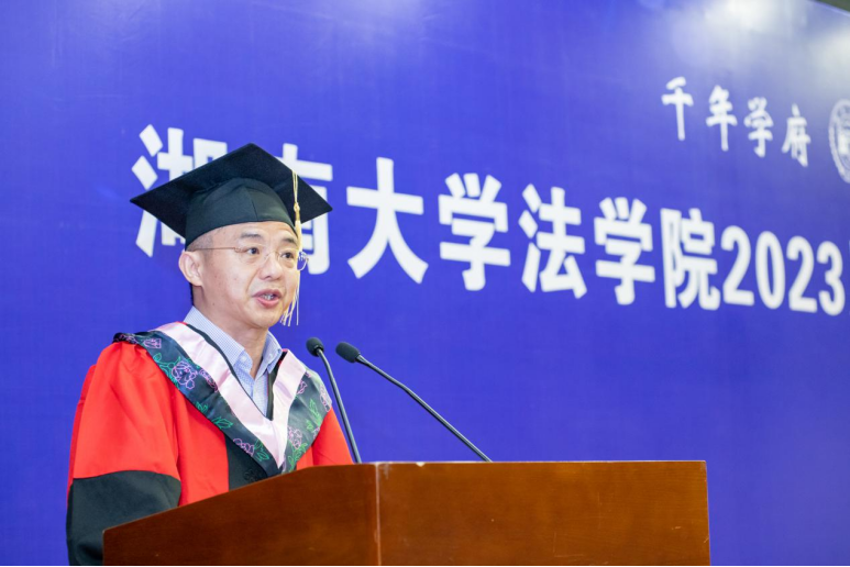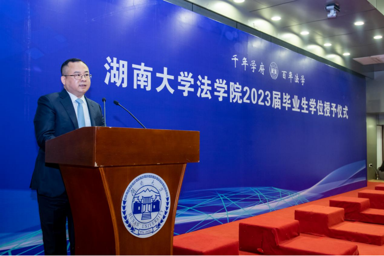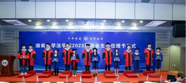 院长黎四奇、院学位委员会主任屈茂辉、院学术委员会成员张智辉、谢佑平、郑鹏程、肖海军、高中以及党委副书记、纪委书记罗英、副院长喻玲、湛建云、蒋海松、院长助理展鹏贺,毕业生导师代表李婧嵘、周宇骏老师等,JM中心执行主任宋晓庆、辅导员、行政教辅老师、2023届本、硕、博毕业生。湖南湘军麓和律师事务所主任李含英律师作为院友代表受邀参加典礼,仪式由国产av