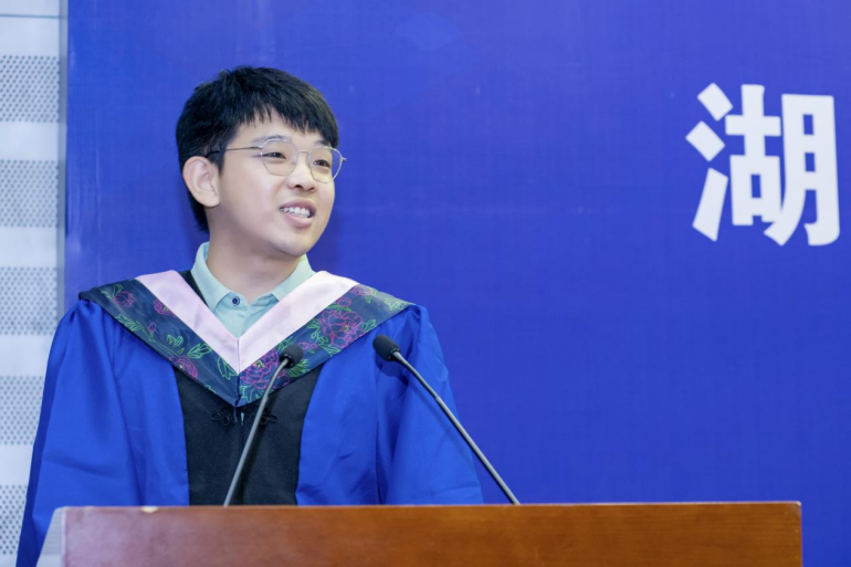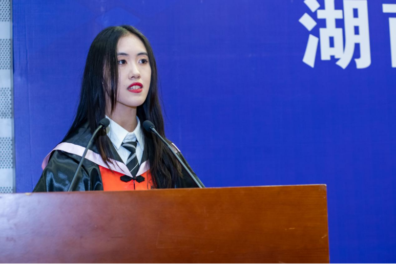 毕业即离别,千言万语道不尽。学生代表发言环节中,本科毕业生代表张盈欣、硕士毕业生代表张键依次发言。他(她)们深情回忆了在湖大国产av