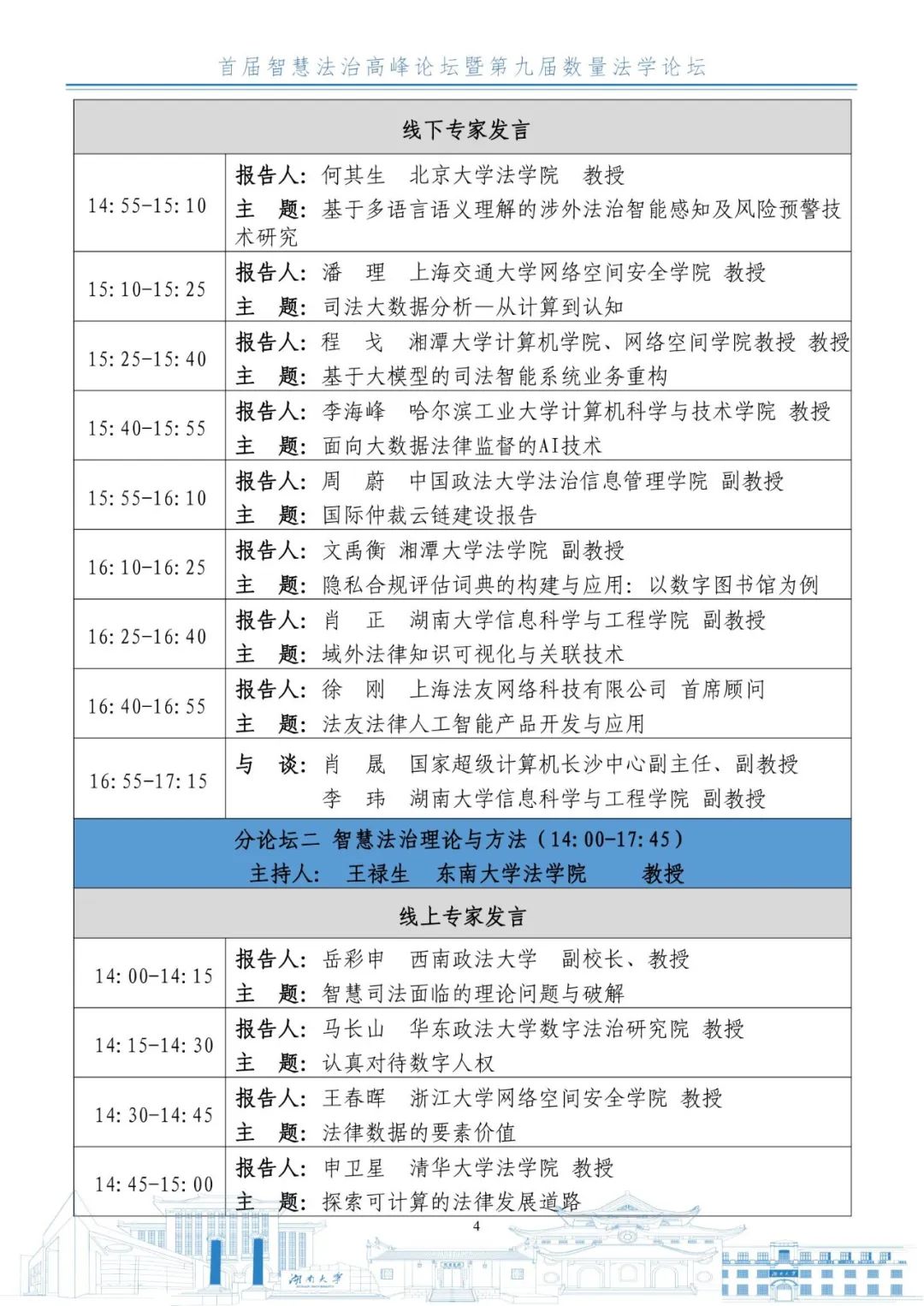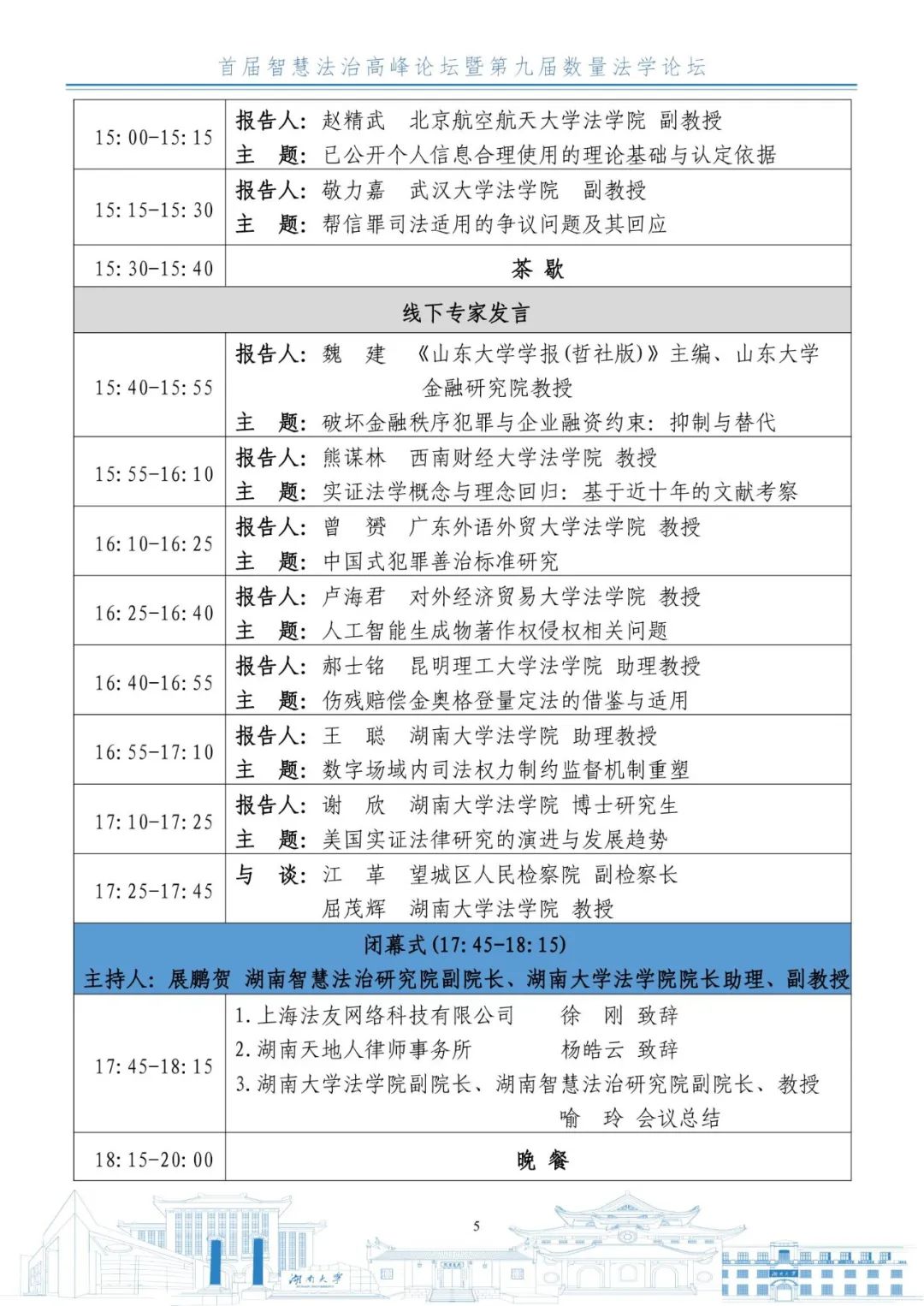 由国产av 主办,湖南智慧法治研究院、国产av 数理-计量法学研究中心、《湖湘法学评论》编辑部承办,上海法友网络科技有限公司、湖南天地人律师事务所协办的首届智慧法治高峰论坛暨第九届数量法学论坛将于2023年12月2日在九所宾馆举办。会议的具体议程如下: