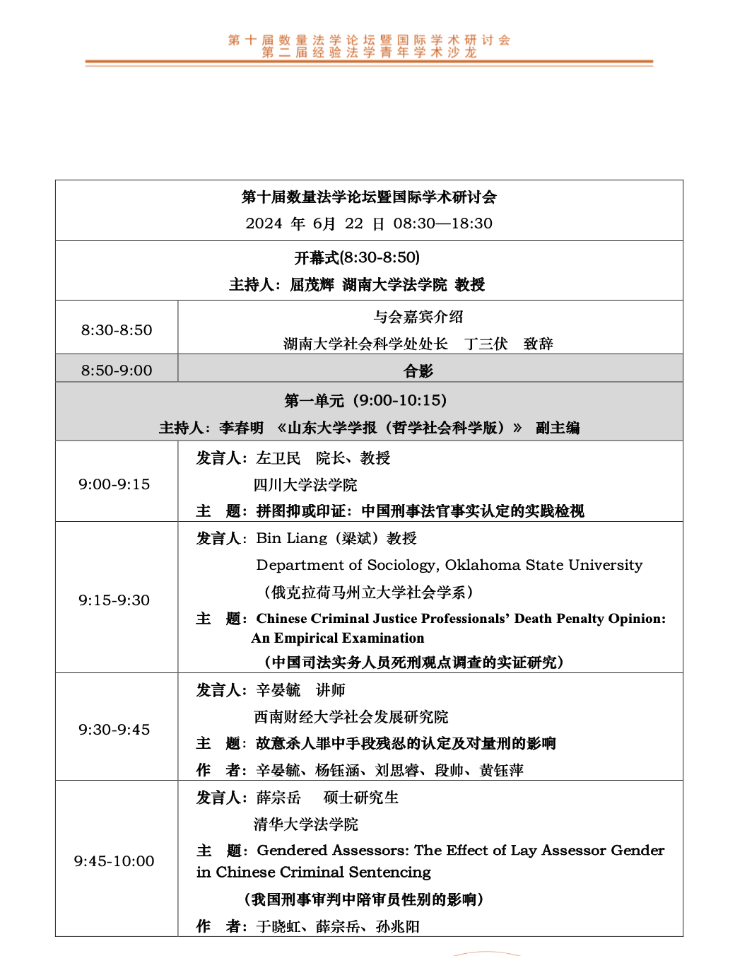 “第十届数量法学论坛暨国际学术研讨会 第二届经验法学青年学术沙龙”将于2024年6月22日在长沙普瑞酒店(长沙岳麓区普瑞大道 8号)举行。会议议程如下: