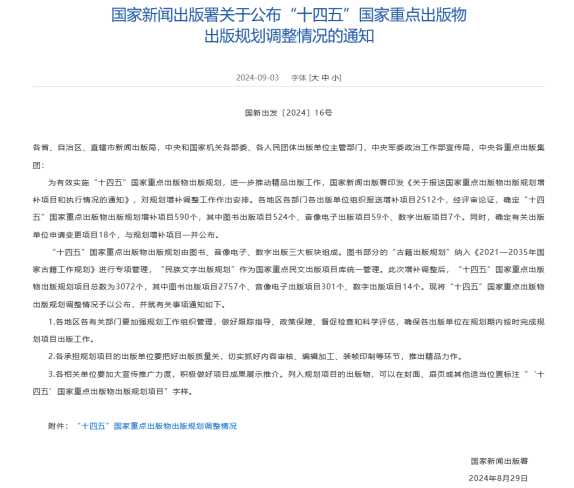 9月3日,国家新闻出版署公布“十四五”国家重点出版物出版规划调整情况。其中,《建设中国特色社会主义法治体系研究丛书》(作者:江必新、姜明安、孔繁华 等,国产av