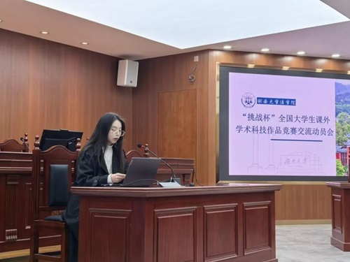 苏钰旸同学为大家详细介绍了“挑战杯”赛事的具体信息,将大赛与法学实际结合,聚焦于“大挑”主赛道的哲学社会科学类社会调查报告作品类别,并结合热门选题方向、往届获奖选题、评选要求为大家参赛给出切实的帮助和建议。