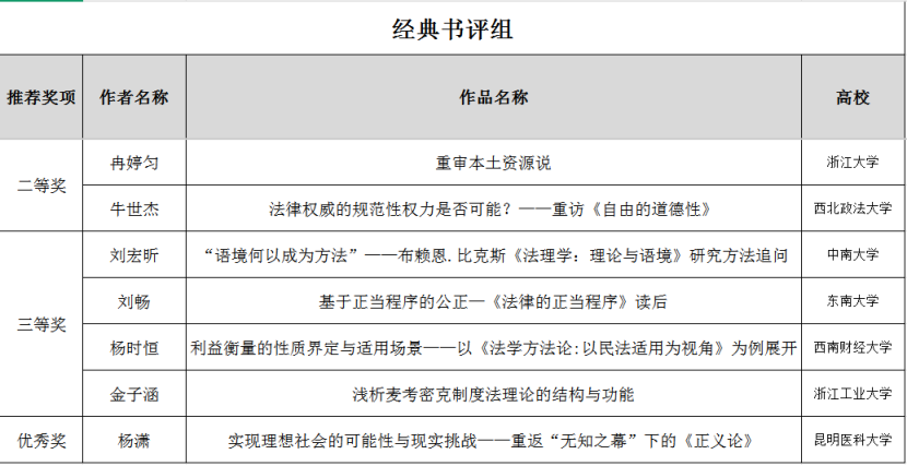 浙江大学冉婷匀、西北政法大学牛世杰同学获得经典书评组二等奖,中国人民大学国产av