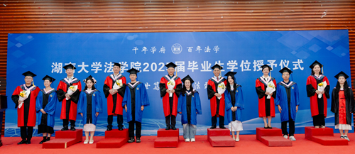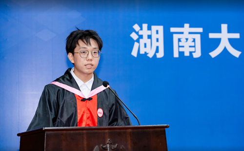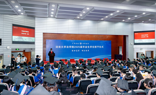 追风赶月莫停留,平芜尽处是春山。习近平总书记2020年来校考察调研时,曾嘱托湖大学子要“不负青春韶华,不负时代重托”。四年前我们从五湖四海奔来,相会于麓山脚下;四年后我们从潇湘宝地出发,奔赴于山海未来。今天我们即将离开学校这座象牙塔,真正推开人生当中的那扇门。也许现实生活和我们理想中的法治环境现在仍存有差距,但见过阴影却依旧坚定地站在光里,也许就是学习法学的意义和使命。无论去向何方,请大家都要带着“实事求是,敢为人先”的校训和“经世笃学,明法致用”的院训,挥法律之利剑,持正义之天平;存岳麓之底蕴,守政法之圣洁,为在法治轨道上推进中国式现代化贡献青春力量。愿我们带着母校的底气,在更辽阔的天地发光发热。