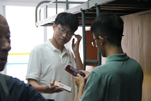 等小萌新们被志愿者送到宿舍安置下来,各班班导则早已经在宿舍等候大家。为大家扫码报到,发放校园卡、银行卡等材料,并为悉心为小萌新及家长们解答初入学、住宿的各种问题。