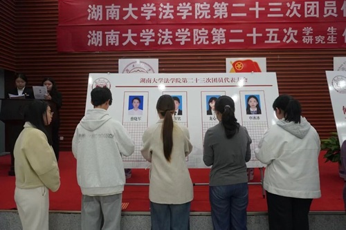 第二十二届团委委员向大会做题为《挺膺担当建新功,砥砺奋进向未来,团结带领全院团员青年踔厉奋发、勇毅前行,努力成长为堪当民族复兴重任的时代新人》的工作报告。报告回顾了二十二届团委在夯实团员信念,厚植实践根基,讲好学院故事,畅通信息渠道等方面取得的成绩与经验,同时认识到共青团工作任重道远,院团干部的能力素质和工作状态仍需提升。接着,他对接下来一年的工作进行了规划和展望,明确未来将聚焦组织建设规范化、实践品牌特色化、宣传内容精品化,持续推进“三会两制一课”落地,深化“岳麓法青”实践品牌,提升宣传矩阵影响力,以“敢担当、善作为”的作风,团结团员青年成长为堪当民族复兴重任的时代新人。