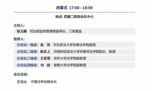 会议表决通过《中国法学会刑事执行法学研究会章程》,选举产生第一届理事会理事。我院林婧副教授当选为第一届理事会理事,并受邀在闭幕式上作分论坛总结发言。