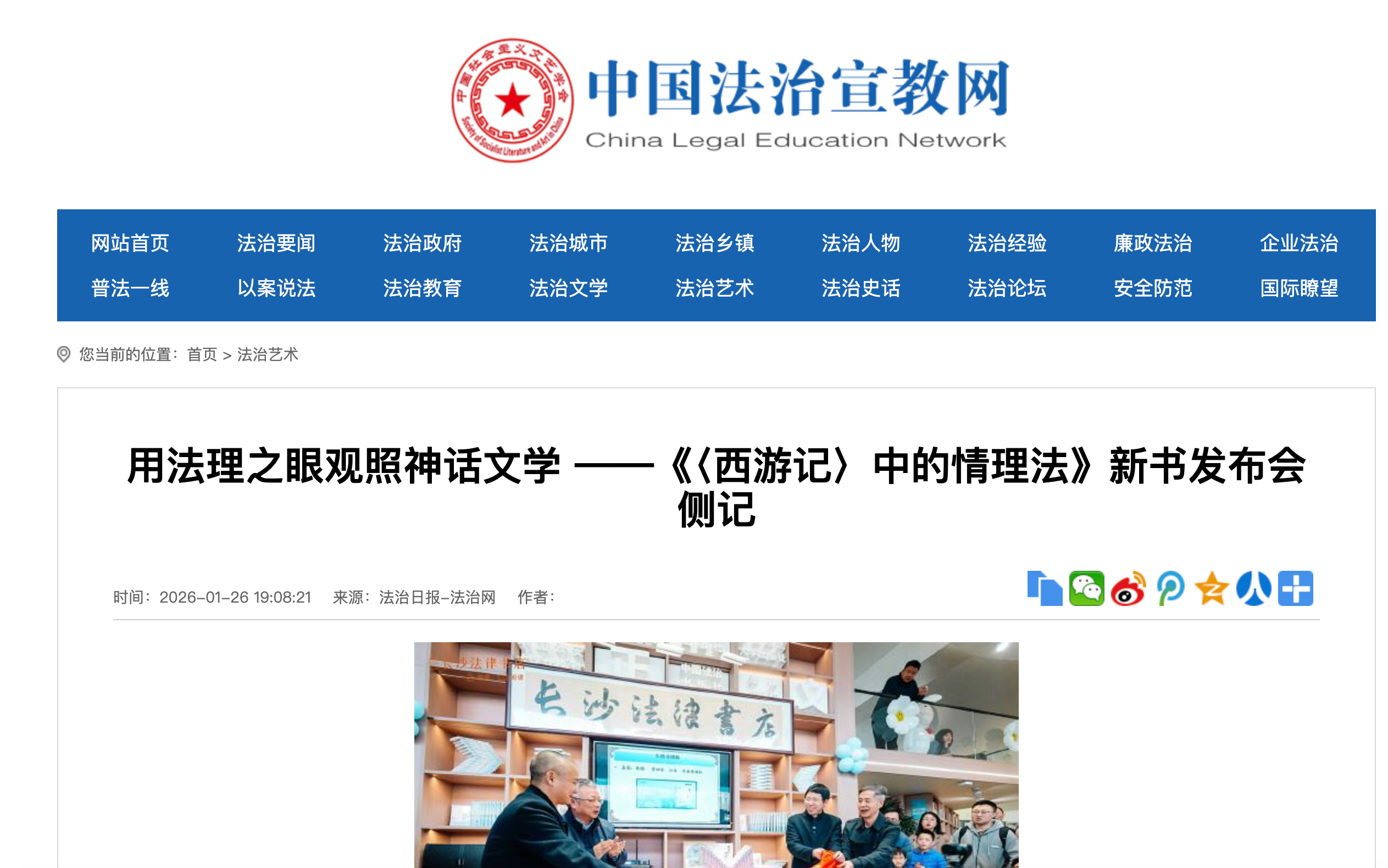 7.红网报道《法律与经典的千年对话:《西游记中的情理法》新书发布会在长沙举行》2026-01-18