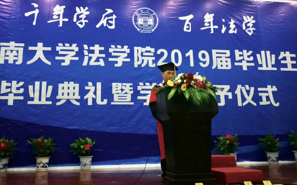 下一环节是院长致辞,屈老师以“法治日进,盛德日新”为主题,为毕业生送别。屈老师以“变革”为主线,从中国的时代变革谈到法治变革,从湖大国产av