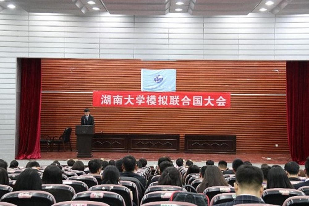 模拟联合国大会和九届中南地区模拟联合国大会。湖大学子以“打造青年领袖,培养国际视野”为宗旨活跃于模联活动,近年来,湖大国关已成为湖南省模联协会的引领者,其中的代表也在全国各地有着出色的表现,曾在中国模联、亚洲模联、东亚模联等模联大会中多次获奖。