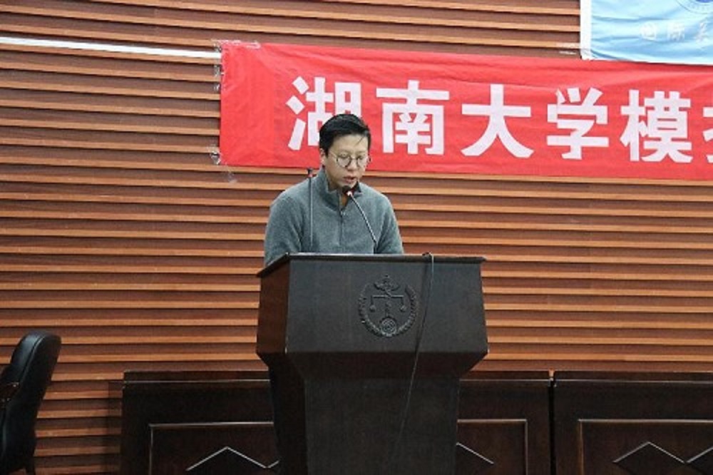 李老师致辞完毕,本届模拟联合国大会的秘书长高亚娜和学术统筹马舒腾分别就湖大模联的历史与发展以及本次大会的筹办工作做了较为详尽的介绍,并承诺,不论是作为组委还是作为学术团队,模联成员都将全力做好本会的筹办工作。最后,开幕式在主席“授锤仪式”中落下了帷幕。