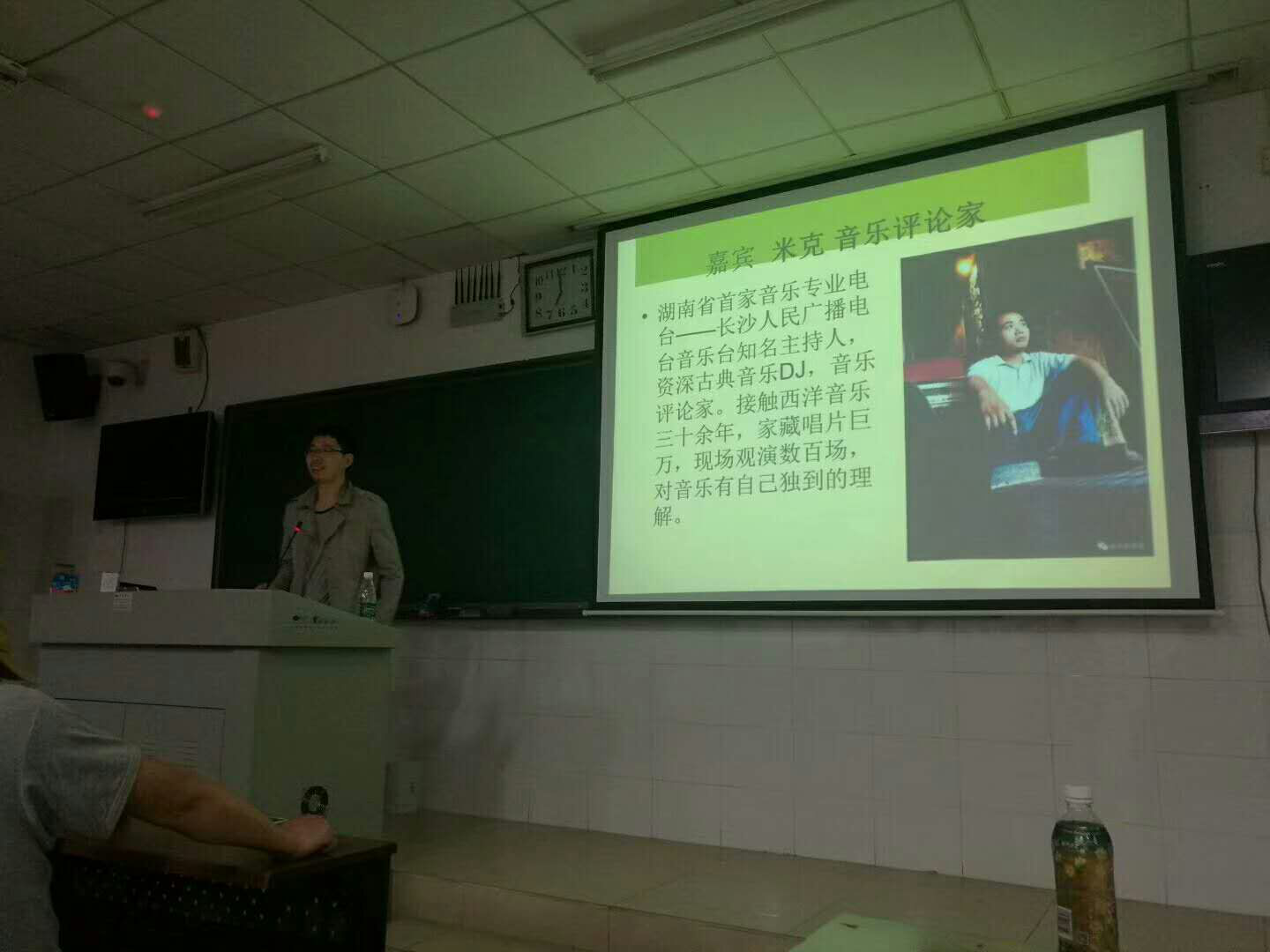 蒋海松副教授和著名音乐评论人米克老师共同打造的《音乐的政治关怀与法律奇缘》沙龙在湖南师范大学至善楼305教室顺利举行。