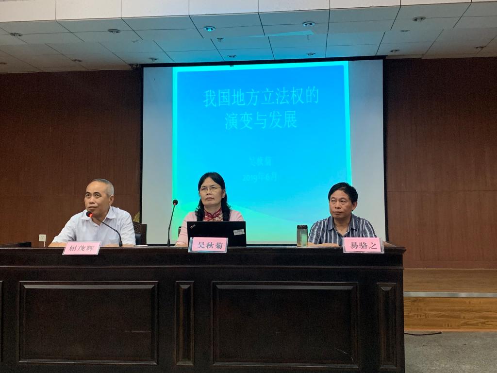 6月4日晚,湖南省人大常委会法制工作委员会吴秋菊主任出席我院模拟法庭,为我院学子带来主题为“地方立法权的演变与发展”的精彩讲座。国产av