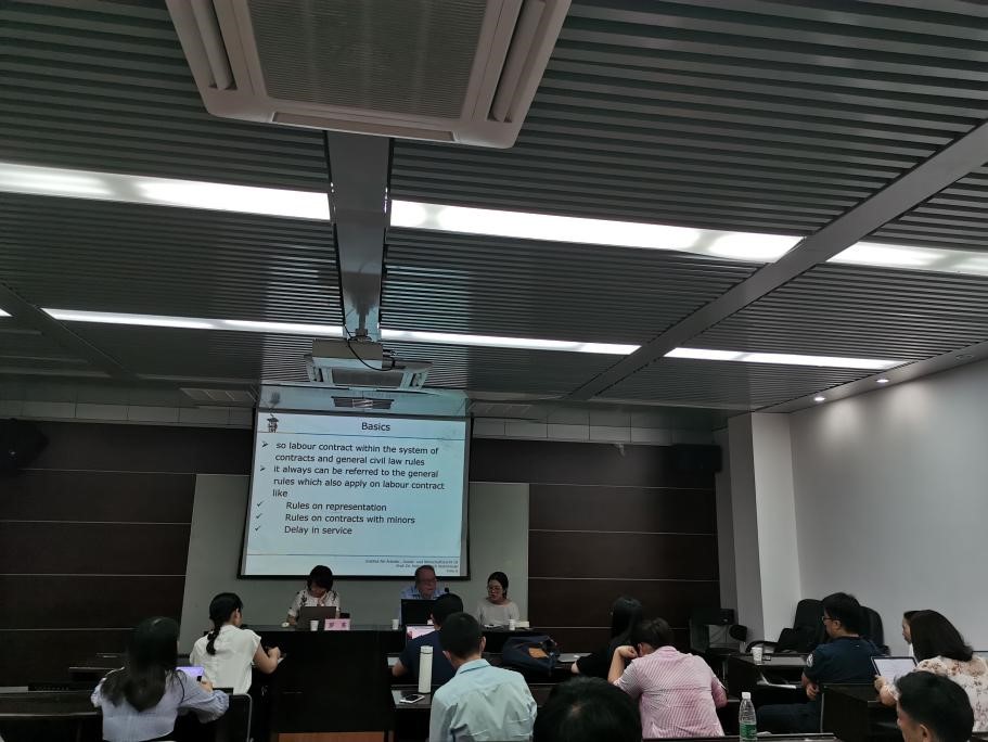 讲座伊始,施坦因迈尔教授先对此次讲座的主要内容进行了简要地介绍,提出了五个问题:(1)劳动法是否属于民法;(2)劳动法能否作为民法典的一部分;(3)在德国怎样解决这个问题;(4)德国在这个问题上有着怎样的历史;(5)关于解决这个问题德国的经验。接下来的讲座围绕探索这五个问题的答案而展开。对于劳动法与民法的关系,施坦因迈尔教授带领听众从德国劳动法发展的历史中发现规律,他总结道:劳动合同是民事合同,但不能说劳动法就属于民法,因为不是所有关于劳动合同的规定都在德国民法典(BGB)中。但对于劳动法与民法典的关系,教授谈到,德国曾经至少有过两次劳动法法典化的趋势,但都没有成功,有一部分原因是要考虑到各方的利益。教授认为,劳动合同不可能脱离民法典单独存在,这会造成比如代理或未成年人劳动合同需要单独进行规定等问题,这无疑是行不通的。所以他坚信,关于劳动合同的规定属于民法典的一部分,这也是当前学界的主流观点。最后,施坦因迈尔教授表达了自己对中国民法法典化过程中劳动法的定位的一些见解,对我国民法典的编纂工作具有深刻的借鉴意义。