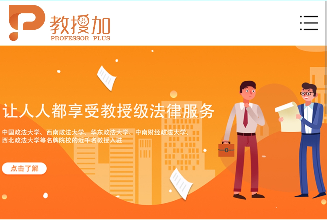 (二)教授加计划邀请合作院校学生入驻教授加法律服务平台,在各大高校上千名签约教授的全程指导下开展法律实践。
