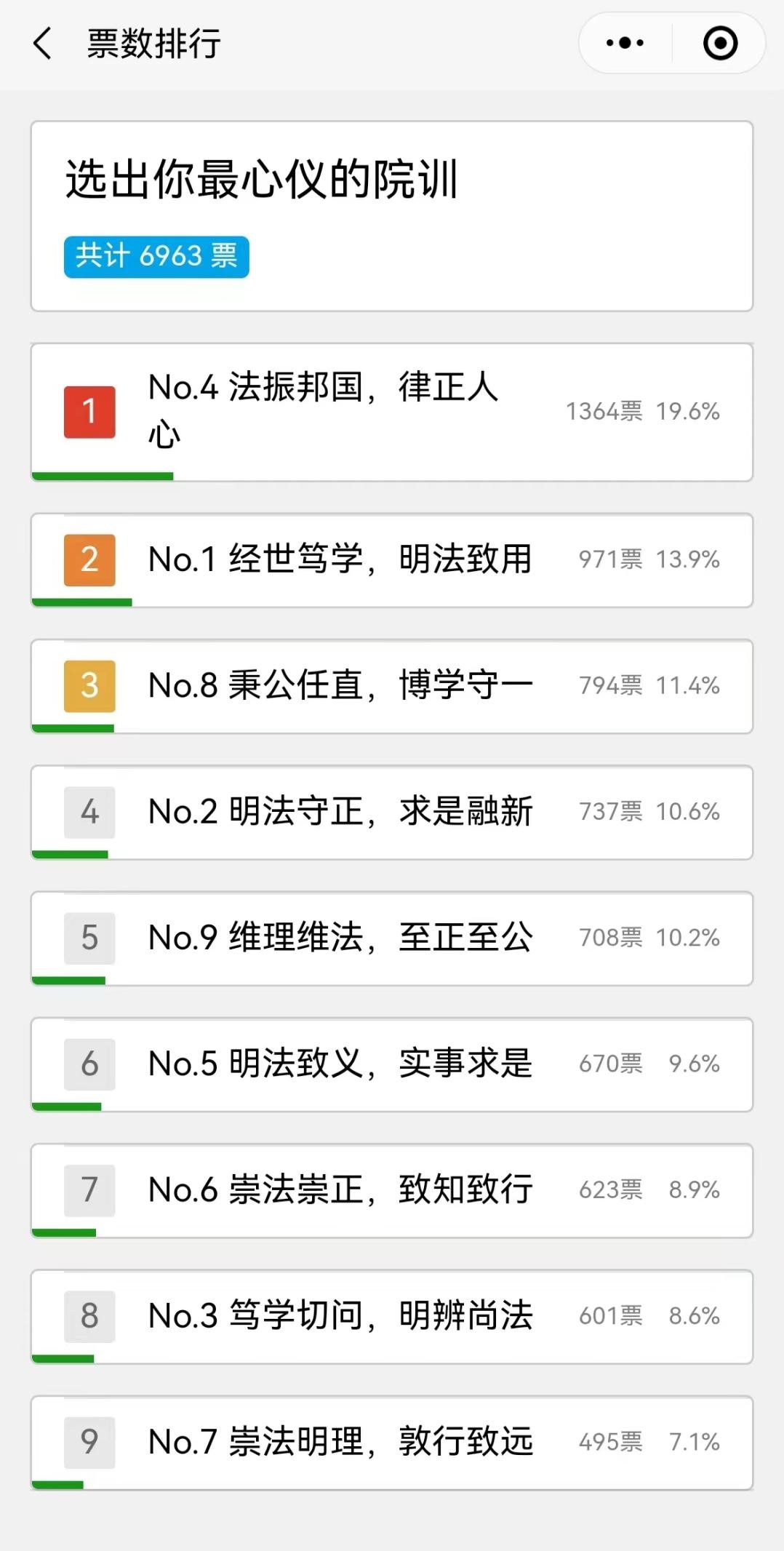 党政联席会最终评审,正式确定本次网络投票较为靠前“经世笃学,明法致用”一条为我院院训。