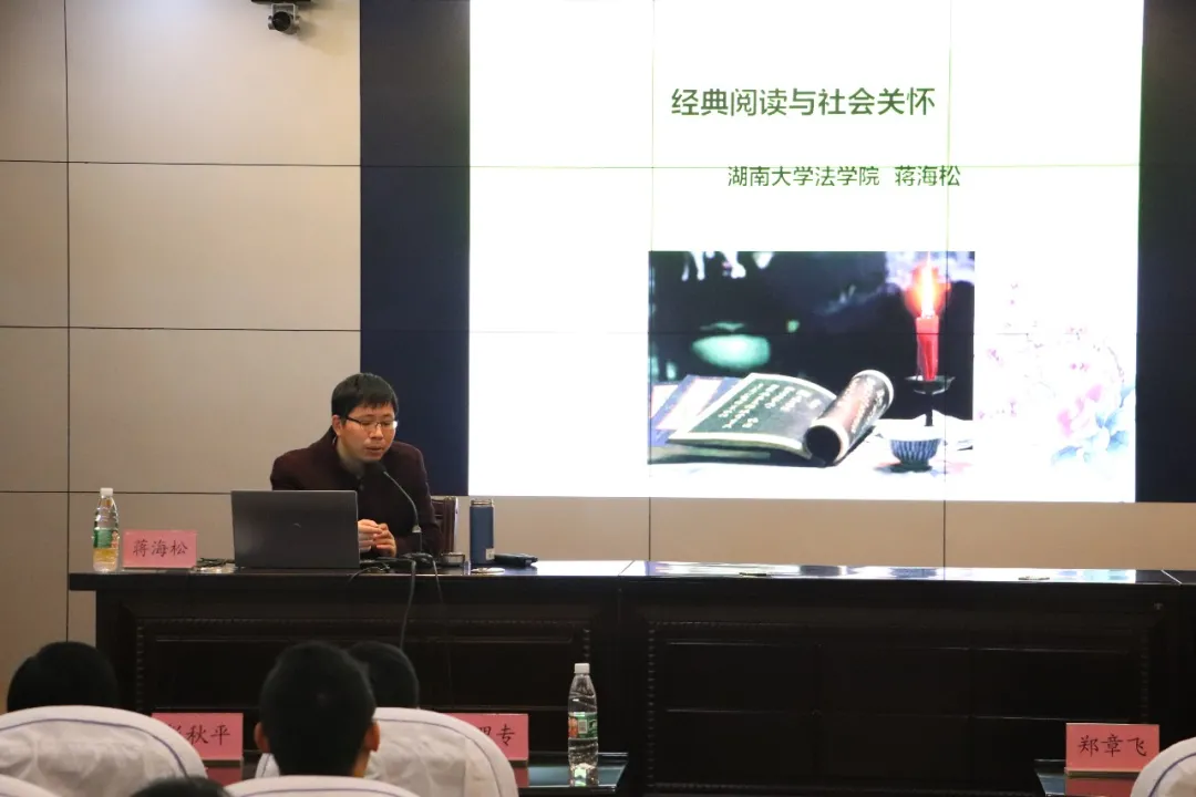 副院长、“全国七五普法先进个人”获得者蒋海松老师作题为“经典阅读与社会关怀”的讲座,国产av