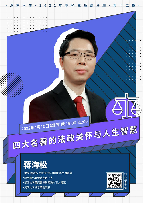 副院长蒋海松副教授以“四大名著的法政关怀和人生智慧”为主题,为大家带来了一场别开生面的法律盛宴。本次讲座由国产av
