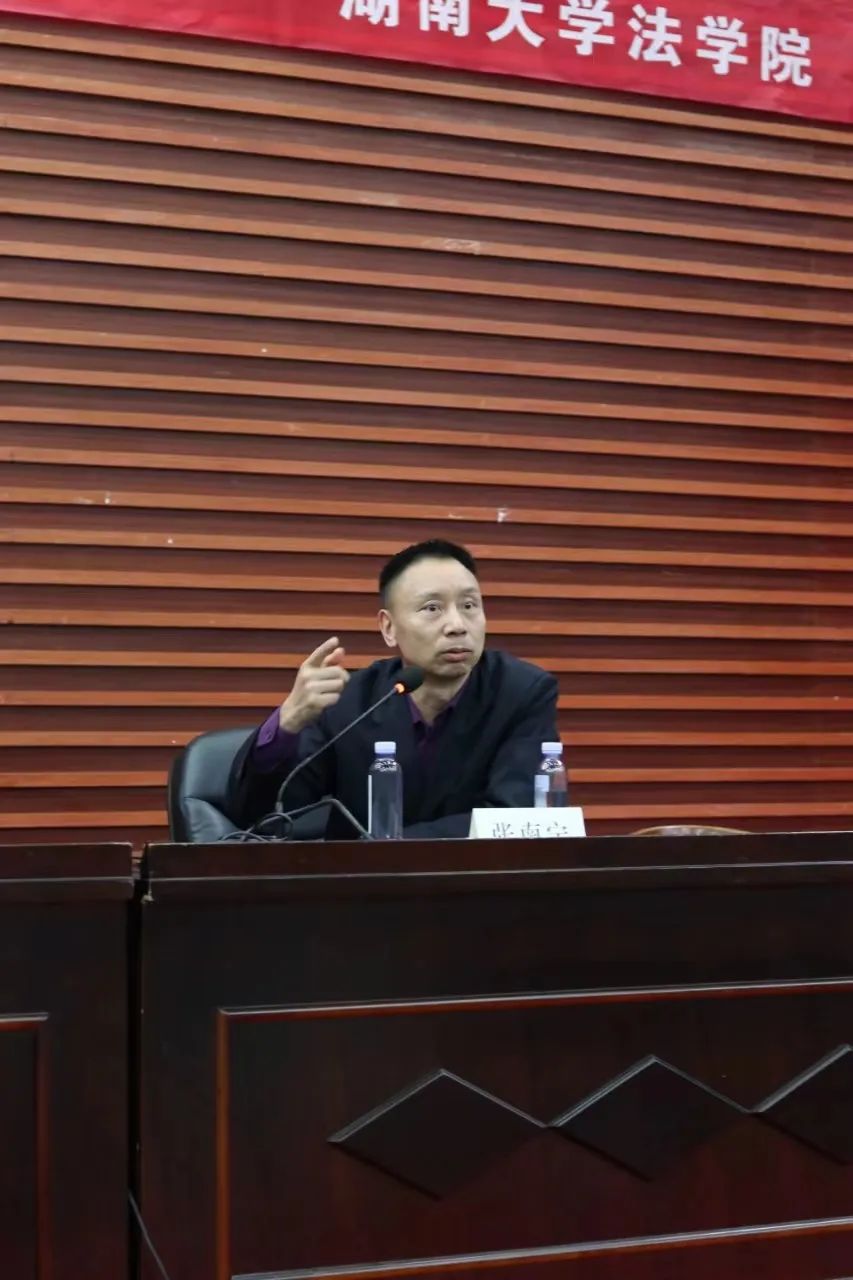 活动伊始,我院研究生孙世亮主持活动,对车润海老师、岳业鹏老师、张南宁老师、众合长沙分校贺康校长的到来表示了热烈的欢迎和诚挚的感谢,并向听众简单介绍了车润海老师、岳业鹏老师。车润海老师毕业于华东政法大学刑法学专业,法考、法硕双栖授课名师,教学影响力大。岳业鹏老师是中国人民大学民商法学博士,法考法硕两栖讲师,教学经验丰富。