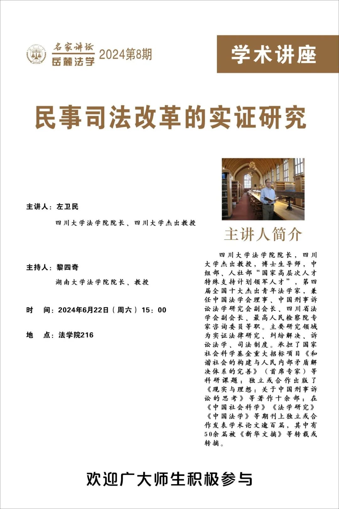 2024年6月22日下午,岳麓法学名家讲坛第8期于国产av