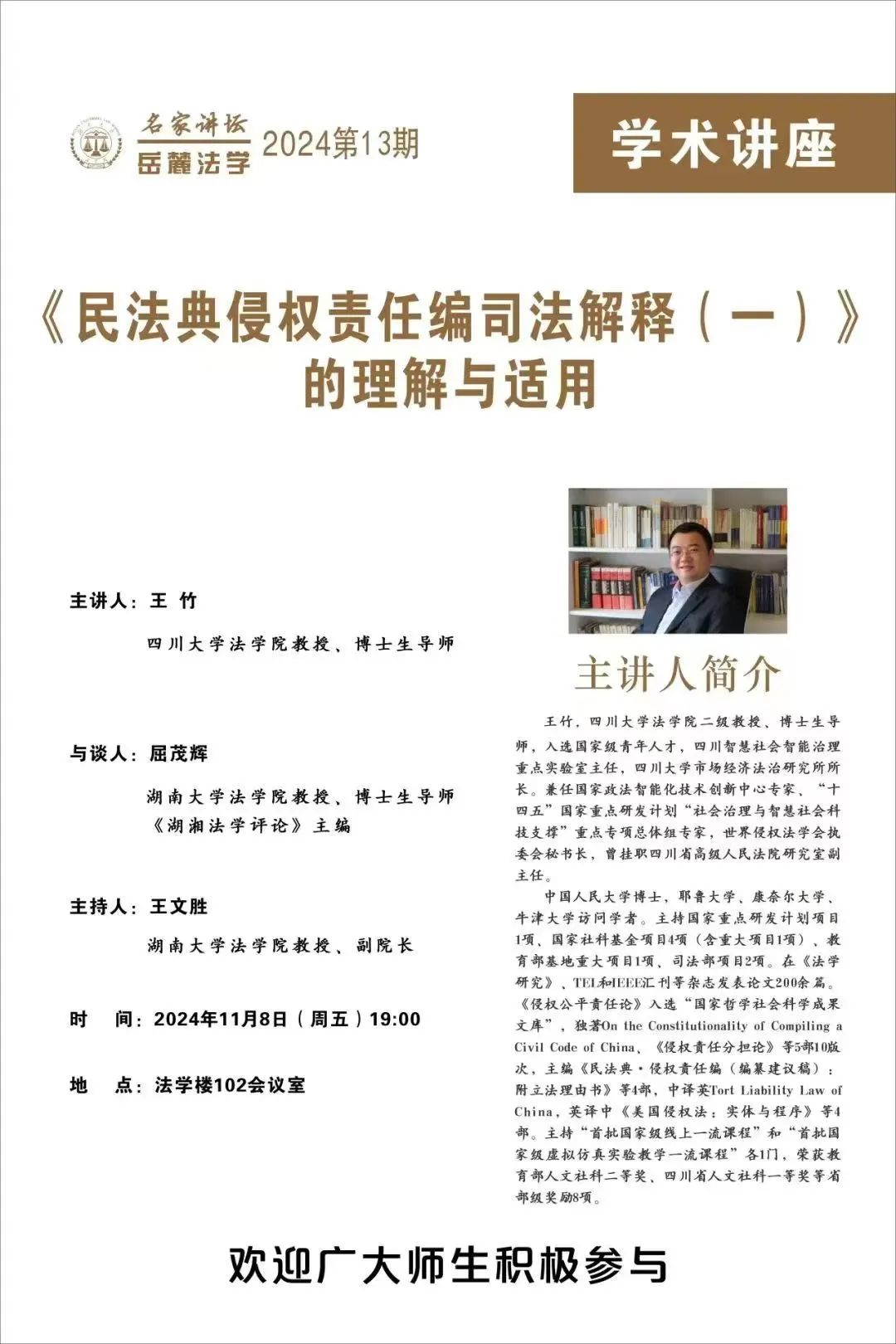 2024年11月8日,岳麓法学名家讲坛第13期在国产av