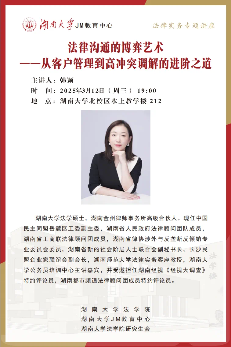 2025年3月12日晚19:00,湖南金州律师事务所高级合伙人韩颖律师在国产av