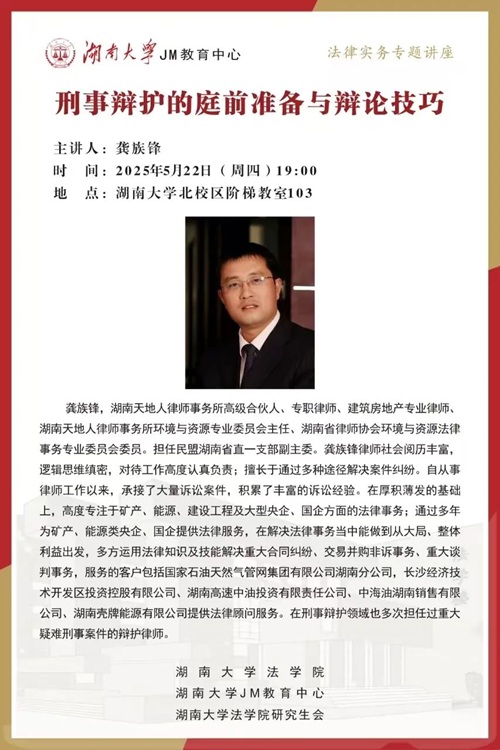 2025年5月15日星期四晚19点,湖南天地人律师事务所龚族锋律师受邀赴国产av