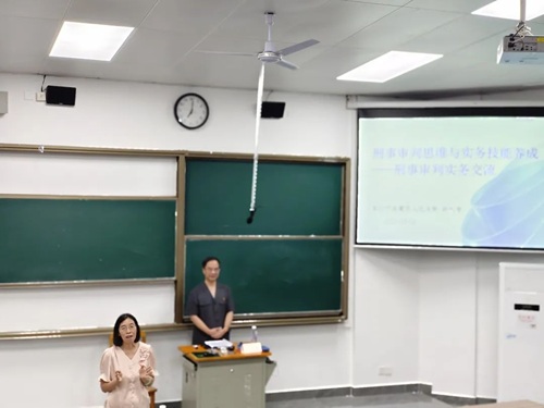北校区阶梯教室103教室做了一堂实务讲座。讲座主题为《刑事审判实务》,我院赵香如教授作为讲座主持人。