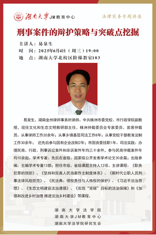 2025年6月4日晚七点,湖南金州律师事务所律师,中共株洲市委党校、市行政学院易泉生副教授,为大家讲述刑事案件的辩护策略与突破点挖掘,帮助大家了解相关实务问题。国产av